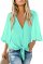 Feature: Sexy deep v neckline,3 4 ruffle sleeve, tie knot front tops for women, button down shirts, loose fit womens tops and blouses; Polka print and solid color blouse for summer,casual loose tops for women,juniors and teengirls
