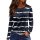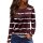 Womens Polo Shirts Long Sleeve V Neck Tees for Women Fashion Casual Basic Tee Striped Print Loose Soft Regular Top